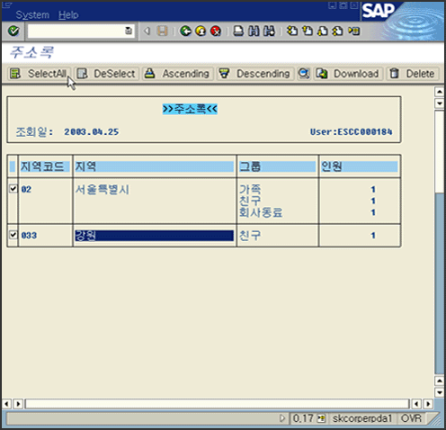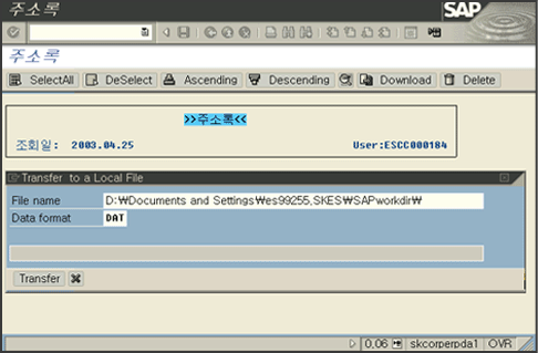 주소록 데이터를 PC파일로 Down받는 기능을 구현한다.즉 Internal Table의 모든 내용을 PC파일로 Down받는다.