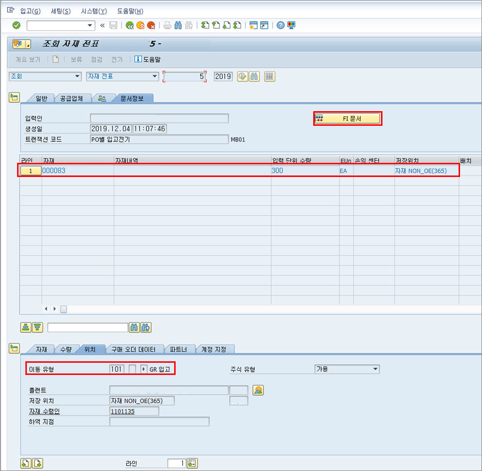 - Issuing Plant 의 Unrestricted Stock 에서 Unrestricted Stock 의 Stock In Transfer 로 이동.FI 전표 발생하지 않는다.