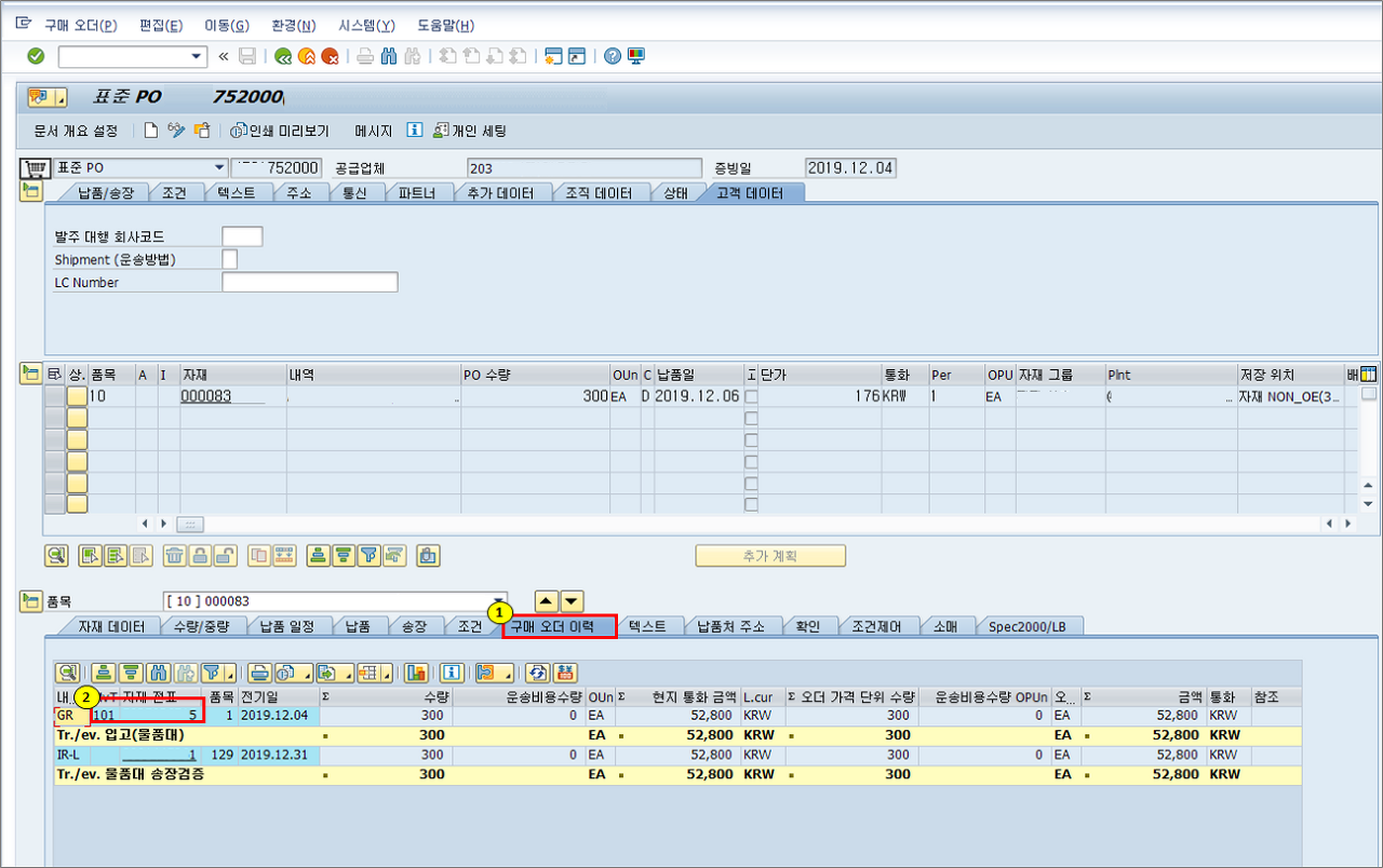 - 특히 Non-Valuated Material 은 P/O 에 계정이 Assign 되어 있지 않더라도 입고내역이 창고에 기표되지 않는다.